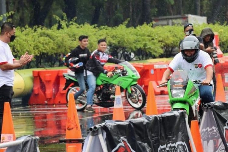 Irjen Pol Fadil Imran ikut menjajal lintasan balap Street Race Polda Metro Jaya 2023 di Kemayoran menggunakan Kawasaki Ninja SSR