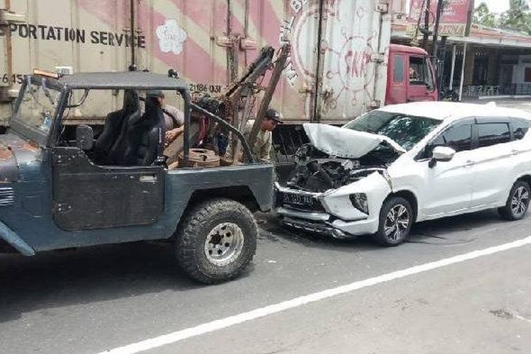 Seruduk Bak Belakang Truk, Bodi Depan Mitsubishi Xpander Ini Langsung Remek