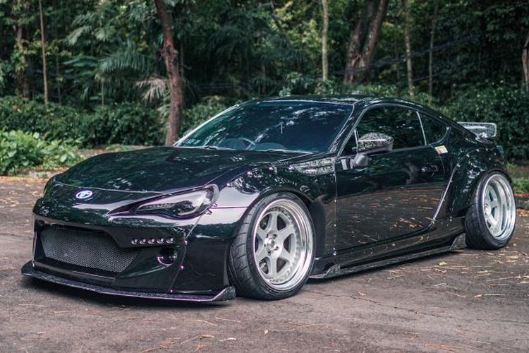 Ekspose kaki-kaki hedon bikin modifikasi Toyota FT86 Rocket Bunny jadi terlihat semok. Pakai airsus 4 titik dan pelek 3pcs.