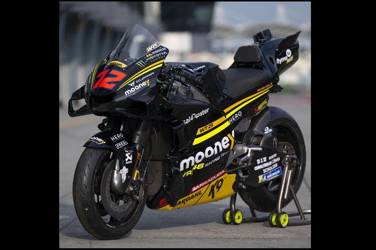 Tim milik Valentino Rossi, Mooney VR46 Racing Team, memakai livery khusus untuk tes MotoGP 2023 di Sirkuit Sepang.