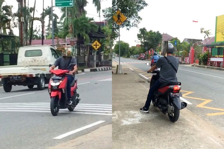 Ulah pemotor Yamaha Gear 125 ini sukses bikin netizen geleng-geleng. Bikin editan tanpa kepala, tapi enggak pakai green screen.