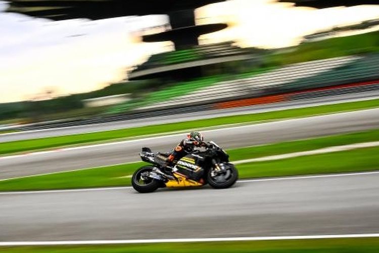 Luca Marini bungkam Francesco Bagnaia saat Tes MotoGP 2023 Sepang hari ketiga, Minggu (12/02/2023). Tim Aprilia terlihat makin cepat.