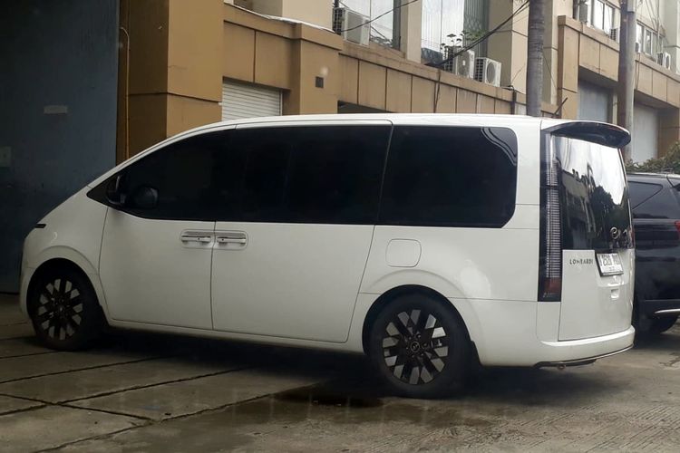 Pemandangan menarik saat tim GridOto Modif melintasi kawasan Cengkareng, Jakarta Barat. Ada sebuah Hyundai Staria memakain emblem Lombardi