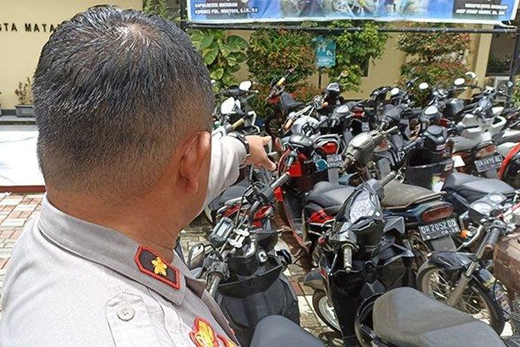 Satlantas Polresta Mataram, Nusa Tenggara Barat (NTB) amankan puluhan motor yang diduga hendak balap liar. Langsung kena tilang maksimal.