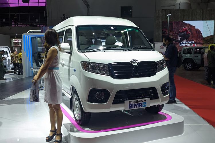PT Solo Manufaktur Kreasi yang dikenal sebagai Esemka pamerkan dua protopite Bima EV cargo van dan passenger car di IIMS 2023.