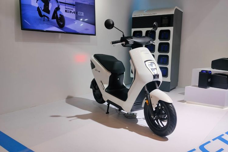 Honda EM1 e dipajang di booth milik PT. Astra Honda Motor (AHM) pada gelaran Indonesia International Motor Show (IIMS) 2023.