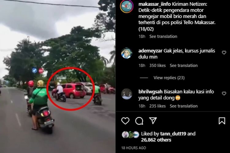 Beredar video Honda Brio dikejar massa, sampai berakhir babak belur di Kota Makassar, Sabtu (18/02/2023). Ternyata tidak bayar pas beli bensin tuh.