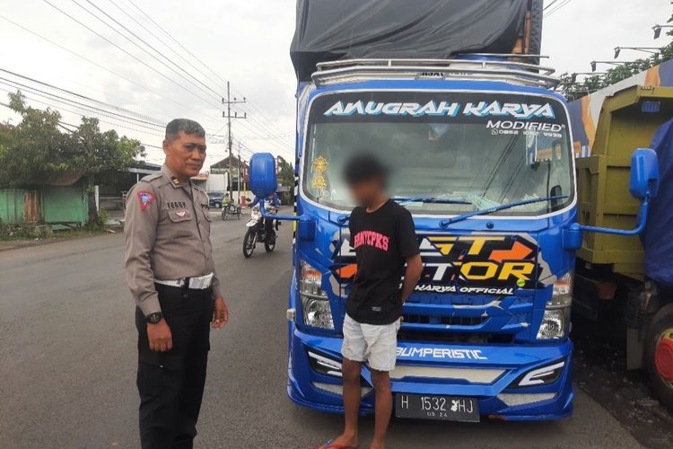 Sopir truk ugal-ugalan dan dua pelaku lainnya berakhir disemprot polisi di Lumajang, Minggu (19/02/2023). Cuma gara-gara bikin konten di jalan raya.