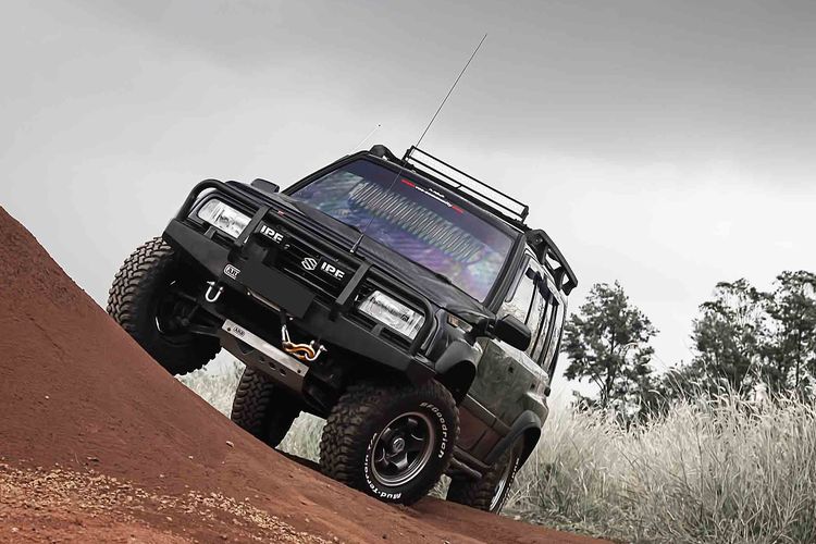 Modifikasi Suzuki Escudo dibikin 4x4 dengan tampilan minimalis full hitam, hasil karya bareng buah hati