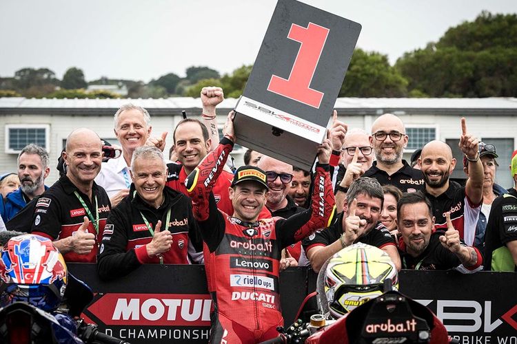 Alvaro Bautista yang mencetak hat-trick kemenangan di WorldSBK Australia 2023, memimpin klasemen pembalap sementara,