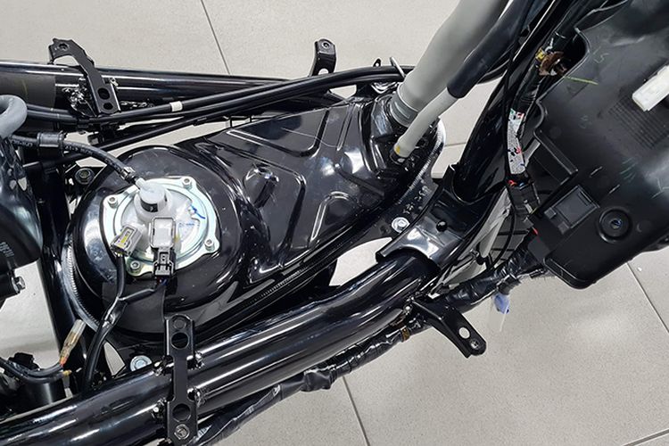 Tangki bahan bakar minyak alias BBM, Yamaha Grand Filano ada di kolong, tepatnya di bawah pijakan kaki layaknya Yamaha Freego.
