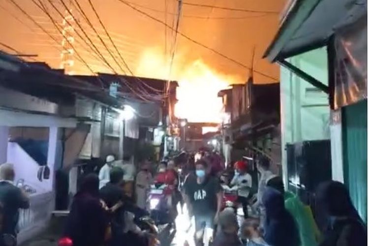 Video proses evakuasi warga saat Depo Pertamina Plumpang terbakar viral di media sosial, warga panik menyelamatkan diri.