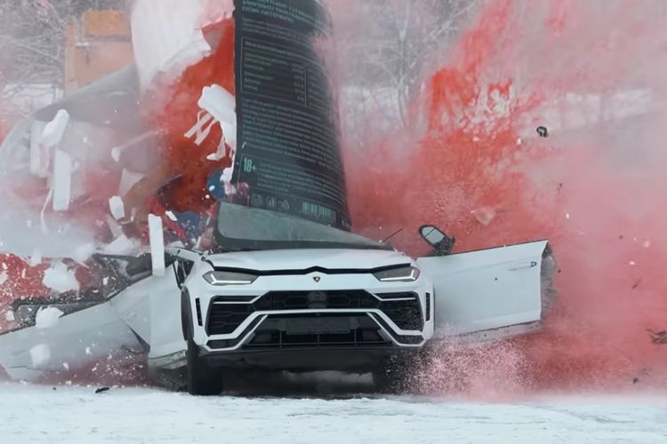 Youtube asal Rusia, Mikhail Litvin bikin Lamborghini Urus hampir gepeng. Cuma buat promosi brand minuman energi miliknya saja!