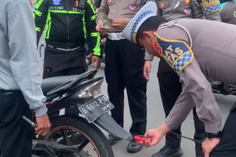 Satlantas polres Bogor melakukan penindskn terhadap para pengendara yang masih nekat pakai knalpot brong