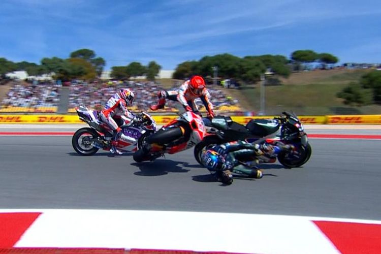 Jorge Martin juga jadi korban Marc Marquez selain Miguel Oliveira pada insiden balapan MotoGP Portugal 2023.