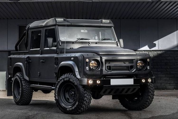 Kahn sukses bikin tampilan Land Rover Defender double cabin ini jadi lebih sangar tongkrongannya dengan warna hitam satin