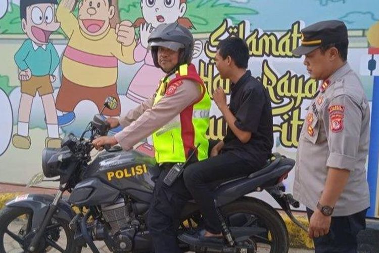 seorang bocah berusia 13 tahun tertinggal di Rest Area Tol Cipali saat mudik Lebaran 2023, akhirnya diantar polisi naik motor.