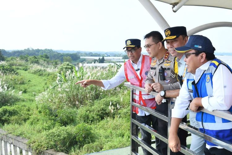 Kakorlantas Polri Irjen Pol Firman Shantyabudi Dampingi Menhub Budi Karya Sumadi tinjau arus balik lebaran via udara di tol Cikampek .