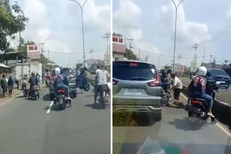 Beredar video di media sosial memperlihatkan seorang ibu penyapu koin di jalur Pantura terlindas tangannya saat hendak ambil uang di jalan.