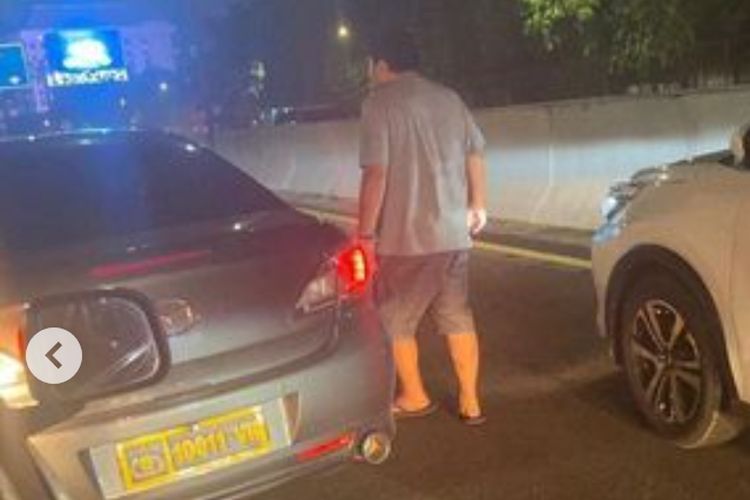 Seorang pengendara Mazda 6 berpelat dinas Polri mengamuk di dekat Tol Tomang, Grogol Petamburan, Jakarta Barat pada Kamis (4/5/2023)..