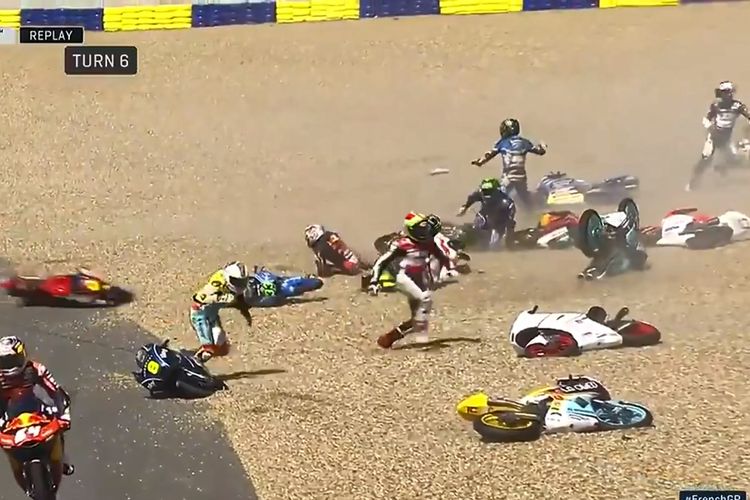 Crash Paling Heboh di MotoGP Prancis, Hampir Separuh Grid Nyungsep Bareng di Satu Tikungan