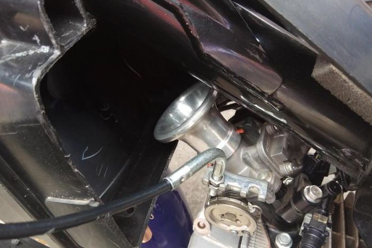 Ternyata motor bebek ini sudah punya intake downdraft dari pabrik sebelum dipakai di motor matic saat ini.