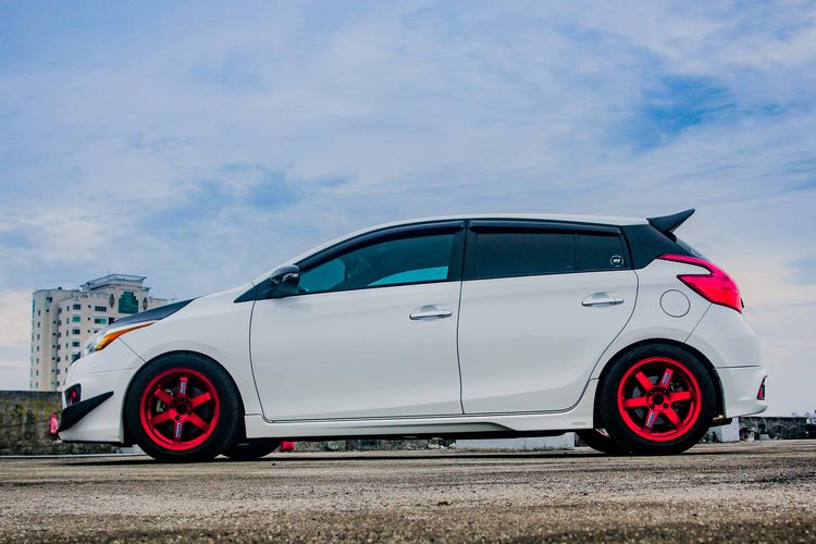Modifikasi Yaris Lele Tampil Modis Pakai Pelek TE37 Berkelir Merah