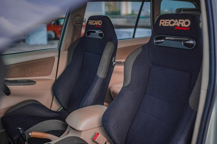Kombinasi elegant sporty di kabin Toyota Innova diesel pakai jok Recaro dan captain seat. Penataan dan perawatan apik bikin Innova ini tetap ganteng.