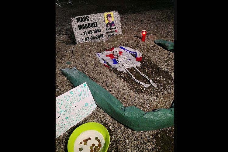 Kejamnya penggemar Valentino Rossi di MotoGP Italia, pernah menyiapkan makam untuk Marc Marquez di Sirkuit Mugello.