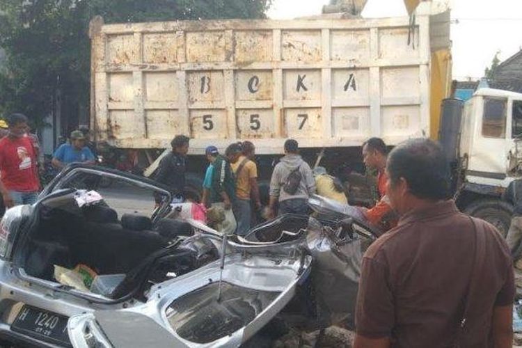 Polisi ungkap kronologi truk pengangkut tanah timpa Toyota Agya di Ngaliyan Semarang, yang menyebabkan ibu dan anak meninggal dunia.