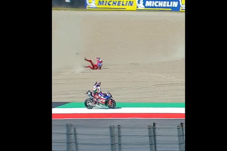 Alex Rins nyukurin Fabio Di Giannantonio yang crash di FP2 MotoGP Italia 2023, kedua pembalap sedang memanas.