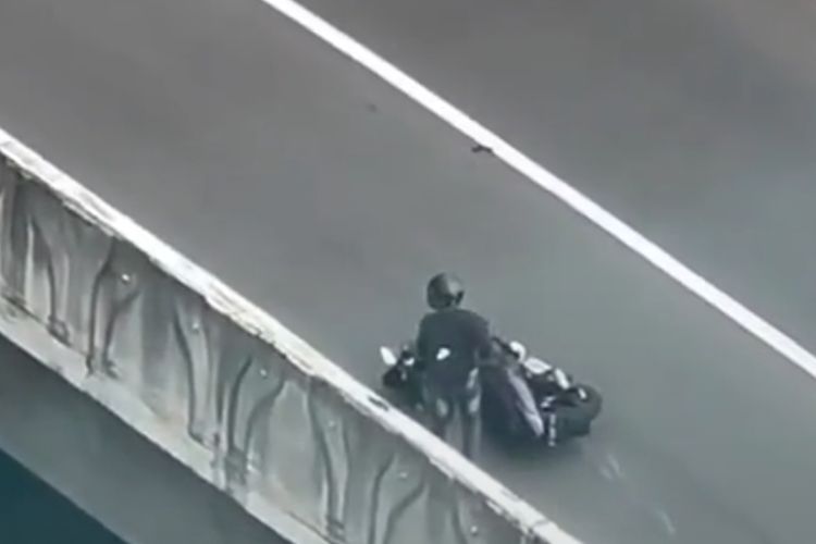 Viral seorang pengendara motor terjatuh diduga kaget lantaran melihat adanya Polisi di Jalan Layang Non Tol Casablanca.