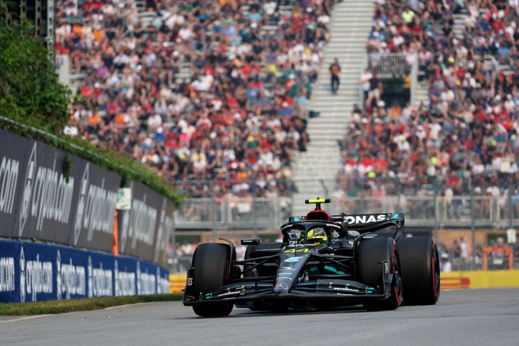 Tim Mercedes-AMG Petronas berhasil memberikan kejutan besar pada hari pertama F1 Kanada 2023, Lewis Hamilton tercepat.