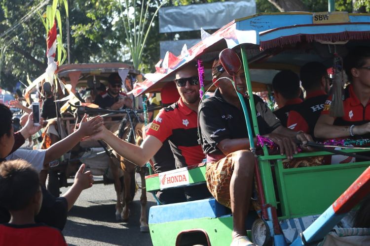 Sebelum balapan, para pembalap dan tim diarak dulu naik delman keliling kota sebelum MXGP Sumbawa 2023.