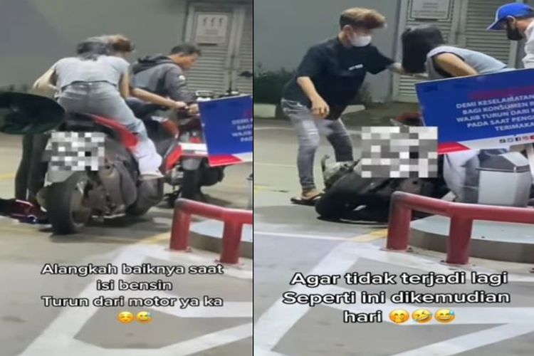 Enggan Turun dari Motor Saat Isi Bensin, Pasangan Ini Langsung Kena Getahnya