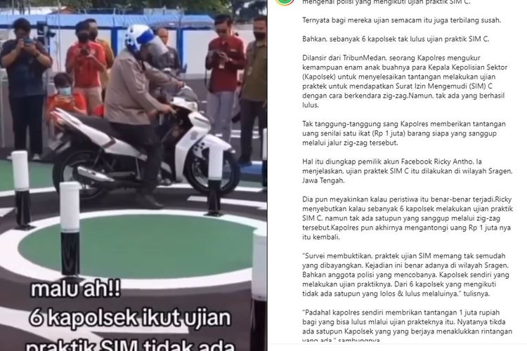 Beredar video viral yang menyebutkan 6 Kapolsek gagal lolos ujian praktik SIM C saat melewati rintangan angka 8, ini faktanya.