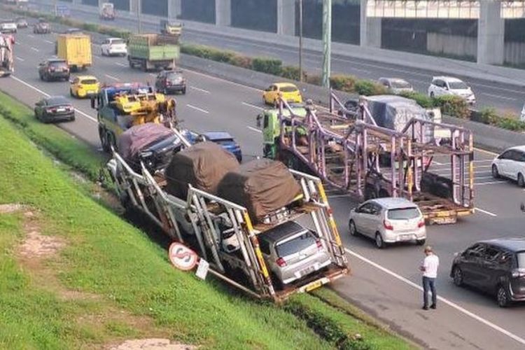Truk Pengangkut Mobil Masuk ke Parit di Tol Jakarta-Cikampek, Polisi Beberkan Kronologinya