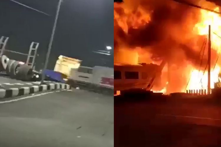BREAKING NEWS - Truk ditabrak kereta sampai meledak di Semarang, belum diketahui apakah ada korban jiwa atau tidak.