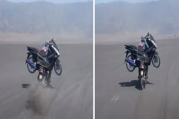 Beredar video memperlihatkan ojek wisata Gunung Bromo yang naik Honda GL Pro dengan mudahnya menggendong Honda PCX di lautan pasir.