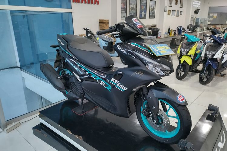 Yamaha Aerox 155 yang sempat dipakai sebagai paddock bike pembalap PATA Yamaha WSBK Andrea Locatelli ada di Sentra Yamaha Malang