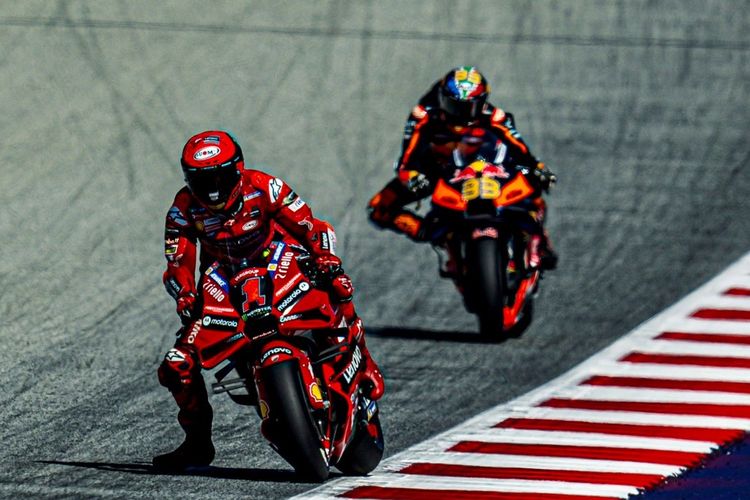 Pecco Bagnaia memenangkan balapan MotoGP Austria 2023, Brad Binder kedua, Marco Bezzecchi ketiga, bikin Valentino Rossi berpesta.