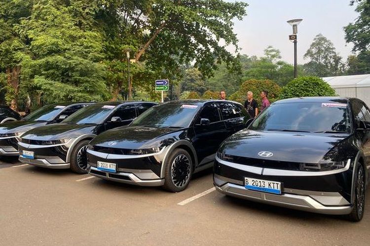 Sejumlah Hyundai Ioniq 5 di KTT ASEAN ke-43 akan disopiri Paspamres dan sipil, perbedaannya ada di pelat nomor.