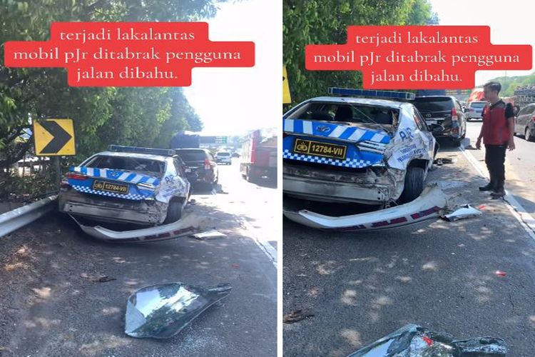 Apesnya Saat Melaju di Bahu Jalan Tol, Mobil PJR Ditabrak Sampai Remuk
