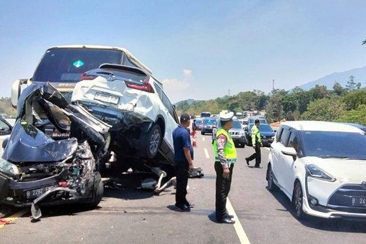 Kendaraan yang terlibat tabrakan beruntun terdiri dari Honda Freed, Honda CRV, Toyota Hiace, Mazda, bus, dan truk..