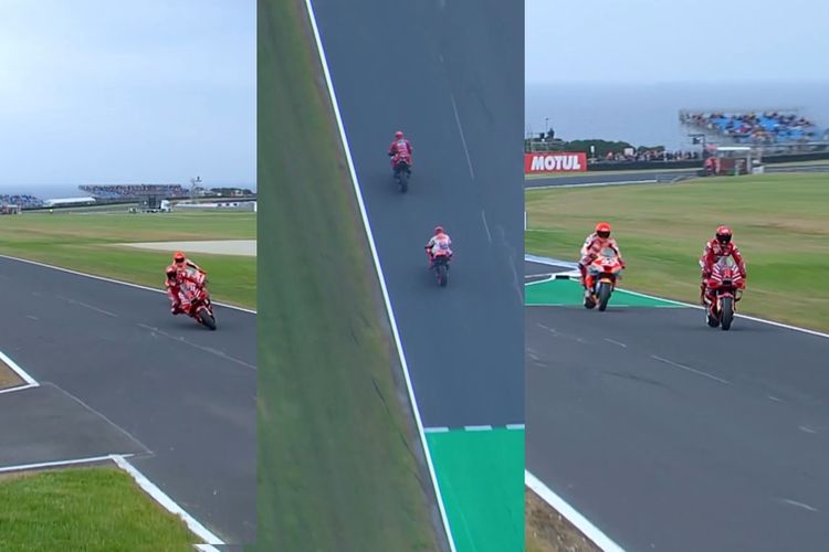 Marc Marquez mencoba membuntuti Pecco Bagnaia pada kualifikasi MotoGP Australia 2023, netizen curiga kenapa bukan Jorge Martin saja?