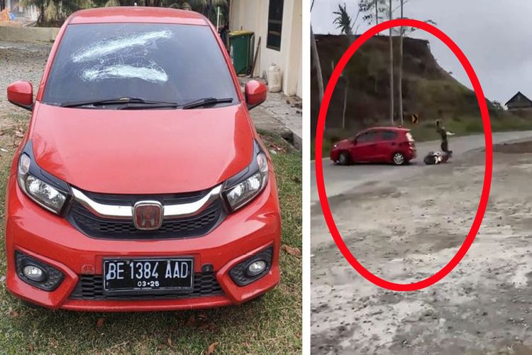 Viral video Honda Brio tabrak polisi di Lampung, ternyata ditumpaku pelaku pencurian. Mobil berhasil diamankan tapi pelaku kabur ke hutan