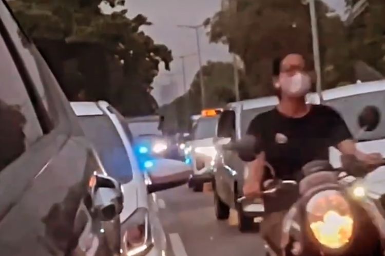 Viral sebuah mobil yang pakai pelat nomor biasa menggunakan strobo saat keadaan lalu lintas tengah tersendat.