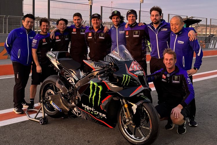 Rekan baru Fabio Quartararo, Alex Rins, memamerkan livery motor Yamaha YZR-M1 untuk menjalani tes MotoGP Valencia 2023 pekan ini.