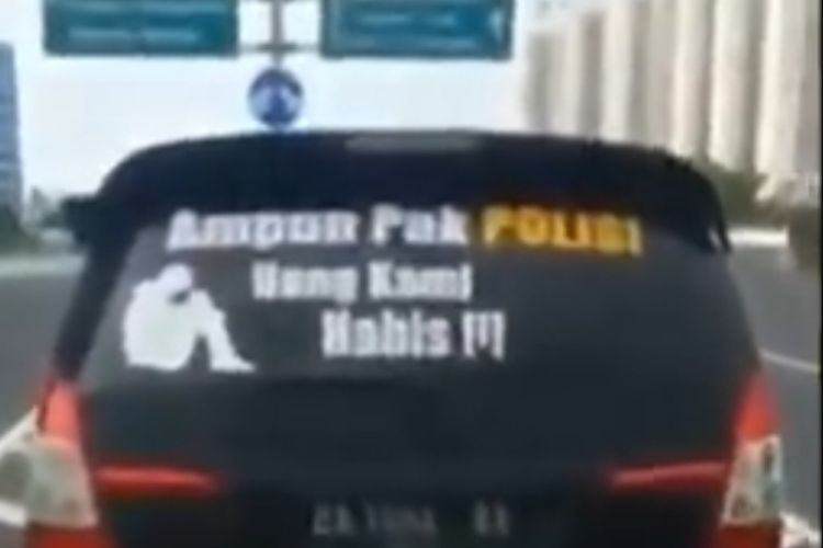 Viral sebuah mobil berstiker dengan tulisan 'Ampun Pak Polisi Uang Kami Habis' akhirnya dihentikan petugas saat melintas di jalan bebas hambatan.