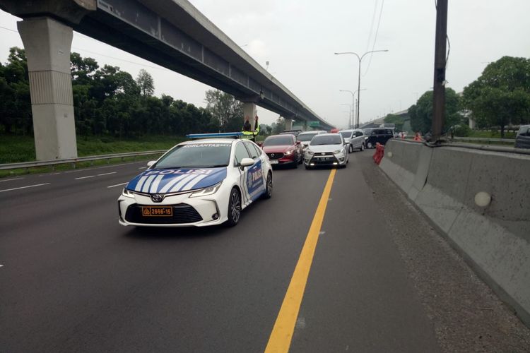 PT Jasamarga Transjawa Tol (JTT) membuka jalur contraflow 2 lajur dari KM 47 s.d KM 65 arah Cikampek Ruas Jalan Tol Jakarta-Cikampek pada pukul 06.45 WIB.